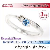 アクアマリン サンタマリア 送料無料 刻印無料 Pt900プラチナ 5mmトリリアント 脇石ダイヤ 指輪 [宅急便]