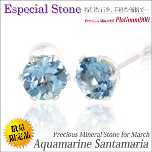 【送料無料】Pt900プラチナ/サンタマリア=アクアマリン/6mm前後 6本爪/スタッドピアス/シンプル/両耳ペア/ダブルロックキャッチ付