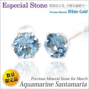 【送料無料】K10ホワイトゴールド/サンタマリア=アクアマリン/6mm前後 6本爪/スタッドピアス/シンプル/両耳ペア/ダブルロックキャッチ付