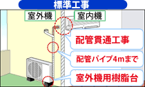 エアコンを取り付けるための基本的な工事を「標準工事」と言います。 Joshin webでは、エアコン本体と標準工事をセットした価格を表示しています。