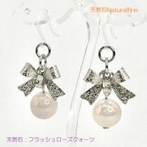 ピアス ローズクォーツ 天然石 アレルギー対応 チタン イヤリング リボン パワーストーン 美容運 恋愛運