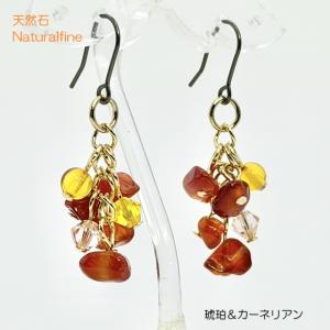 ピアス 琥珀 カーネリアン アンバー 天然石 アレルギー対応 イヤリング 樹脂金具 パワーストーン 成功に導く