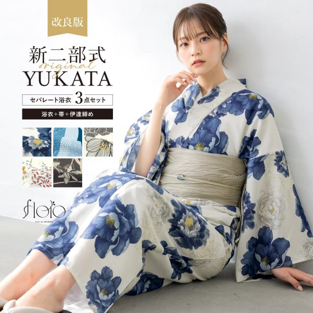 【予約】簡単着付け セパレート浴衣 レディース セット 3点セット 2026 浴衣 帯 伊達締め 浴衣セット 女性 二部式浴衣 白 ブルー 黒 花柄