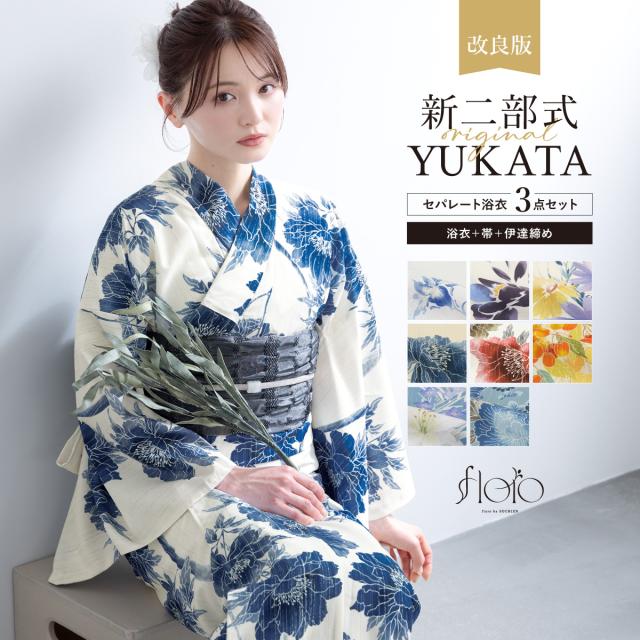 【予約】簡単着付け セパレート浴衣 レディース セット 3点セット 2026 浴衣 帯 伊達締め 浴衣セット 女性 二部式浴衣 白 赤 紺 ブルー
