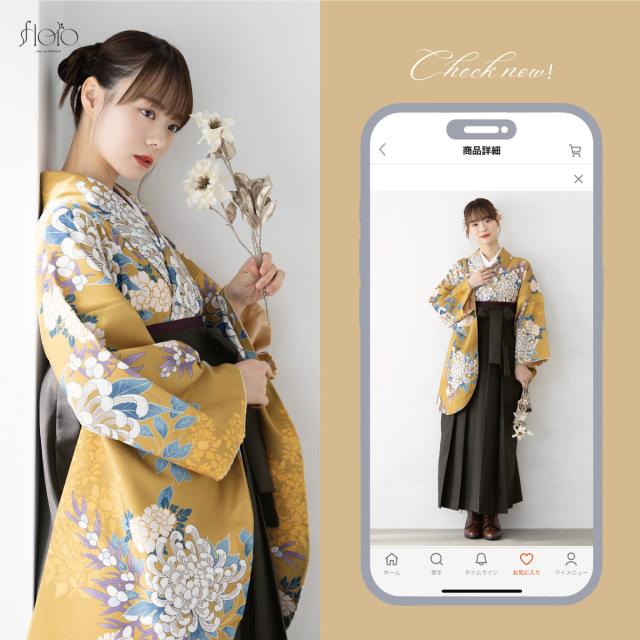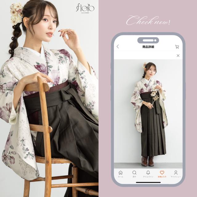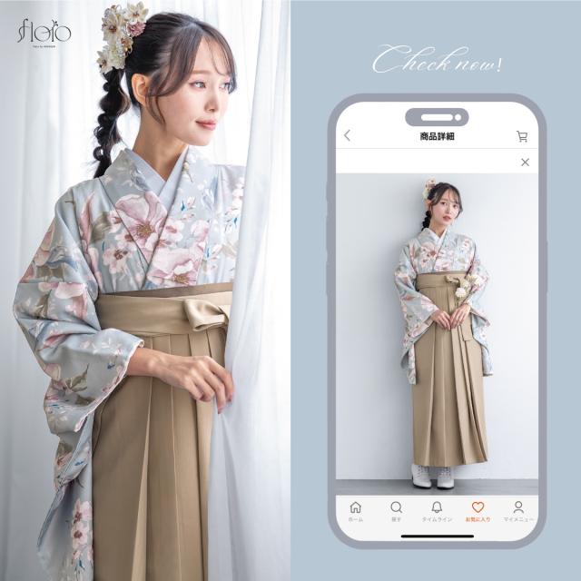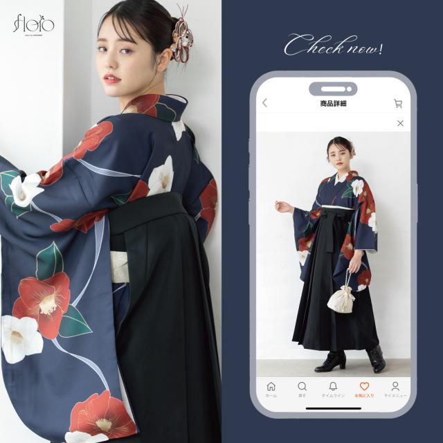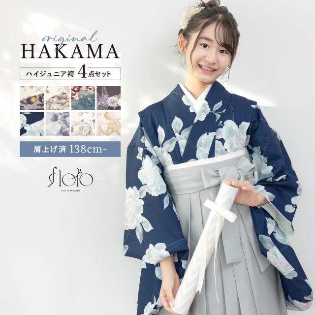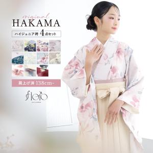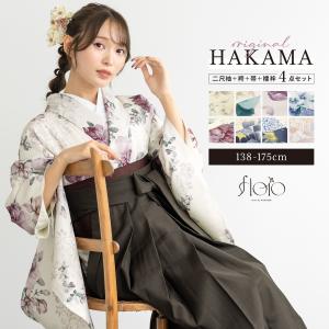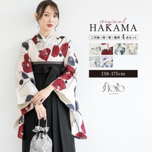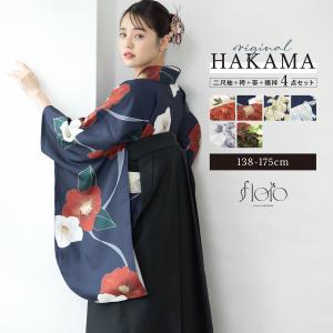 【予約】袴セット 卒業式 大学生 レディース 女性 女の子 小学生 ジュニア 袴 4点セット floro 黒 紺 赤 緑 白 蓮 鶴 花柄 二尺袖 着物
