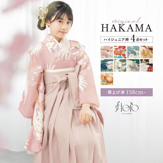 袴セット 卒業式 レディース 女の子 ジュニア 子供 4点セット 着物セット 緑 赤 白 紺 黒 グレー 牡丹 菊 桜 椿 鶴 和柄 花柄 大学卒業式