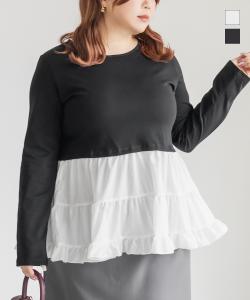 大きいサイズ/レディース/3L/4L/5L/フリルドッキングプルオーバー