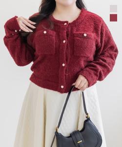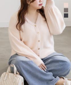 大きいサイズ/レディース/LL/3L/4L/CLETTEオリジナルゴールドボタンシャギーニットカーディガン