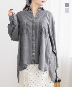 大きいサイズ/レディース/3L/4L/5L/ダブルポケットデニムシャツ
