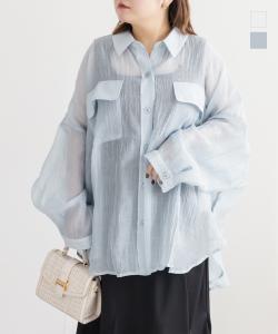 大きいサイズ/レディース/3L/4L/ダブルポケットシアーシャツ