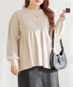大きいサイズ/レディース/3L/4L/5L/ビジュー付きペプラムニットプルオーバー