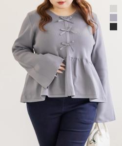 大きいサイズ/レディース/LL/3L/4L/CLETTEオリジナルペプラムリボンニットプルオーバー