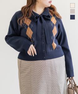 大きいサイズ/レディース/LL/3L/4L/CLETTEオリジナルボウタイリボンアーガイルニット