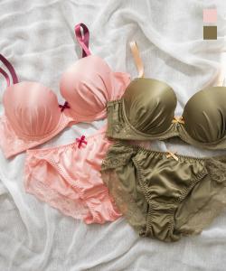 大きいサイズ/レディース/D85/D90/D95/E85/E90/E95/F85/F90/F95/G85/G90/G95/プリーツジョーゼットレースブラジャー&ショーツセット