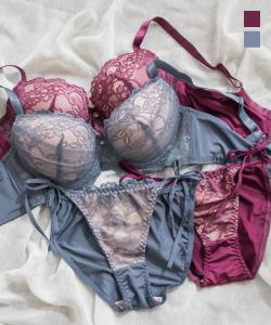 大きいサイズ/レディース/D85/D90/D95/E85/E90/E95/F85/F90/F95/G85/G90/G95/脇高シアーレースブラジャー&ショーツセット