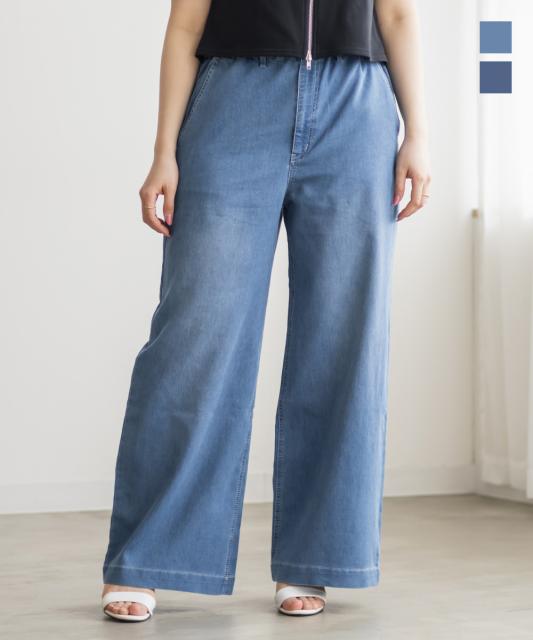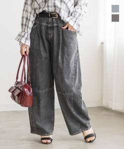 大きいサイズ/レディース/3L/4L/5L/ワイドバレルレッグデニムパンツ