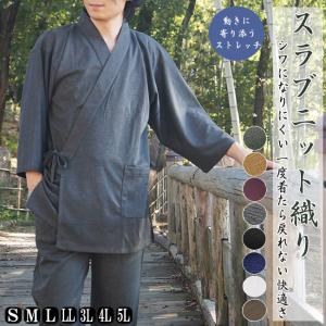 作務衣 メンズ スラブニット織り ストレッチ さむえ S/M/L/LL/3L/4L/5L 上下セット さむえ サムエ 男性 紳士 部屋着 紳士 業務用 ルー