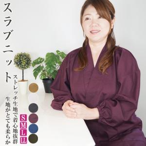作務衣 女性 スラブニット織り 婦人 さむえ ストレッチ S/M/L/LL バーガンディ 黒 紺 からし 白 緑 さむえ サムエ 上下セット パジャマ