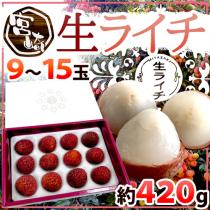 宮崎県産 ”生ライチ” 9〜15玉 約420g 化粧箱入り 国産 レイシ 茘枝【予約 5月末以降】 送料無料
