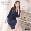 一部予約販売 キャバワンピース RyuyuChick カシュクール 七分袖 袖付きワンピース ベルト付き ギャザー付け キャバ