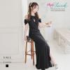 ロングドレス RyuyuChick ホルターネック オフショル 谷間みせ 二の腕カバー ウエストギャザー キャバ ドレス キャ