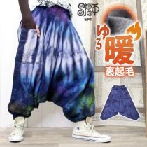 裏起毛パンツ レディース サルエルパンツ 大きいサイズ 裏フリース風起毛ふんわりタイダイ アラジンパンツ