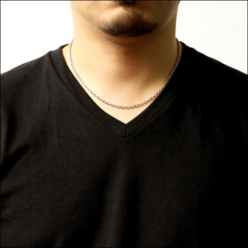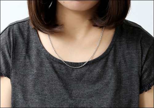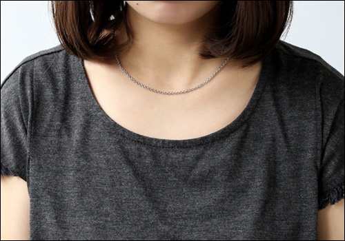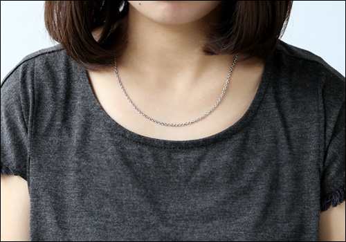 | ▲45cm/標準的な体型の方で少し長めになります。Tシャツやカジュアルなコーディネートにはオススメ。 | ▲50cm/大きめのペンダントトップや重ね付けに合う長めサイズ。カッコイイ系のコーディネートが出来ますね♪ |