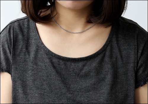 | ▲38cm/首にぴったりくる長さ。 一粒石の小ぶりなペンダントトップや華奢なチェーンがお勧め。 | ▲40cm/女性の標準サイズ。キレイめな服装との相性がよく首のラインをすっきり見せる効果もあります。 |