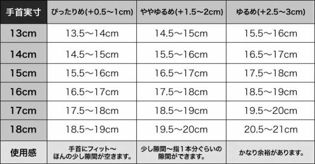 | 【腕回り13.5cmさんの場合】≪FLUI マイクロブレスなら…17cm≫ 当店にご用意のあるレディースサイズのブレス系はかなり余裕〜やや余裕があるサイズ感アジャスターのあるもの・サイズ調節が出来るものがオススメ。 | 【腕回り15cmさんの場合】≪FLUI マイクロブレスなら…18cm≫ 当店にご用意のあるレディースサイズのブレス系は少し余裕があるサイズ感メンズライクなデザインもカッコよく着けこなせる。レディースタイプのバングルも程よいサイズ感で使えます。 |