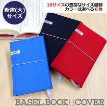 【メール便可】ブックカバー 新書(大)判 バーゼル コットン 布製 ゴム紐付き 日本製 シンプル 無地 調整可