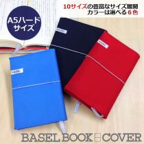 【メール便可】バーゼル コットンブックカバー A5ハードカバー判 ゴム紐付 文具 布製 日本製