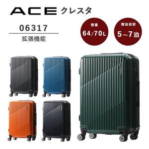 エース クレスタ スーツケース 06317 Mサイズ 64L 70L 5泊 7泊 拡張 ジッパー 4輪 TSAダイヤルロック 受託手荷物対応 キャリーケース ACE