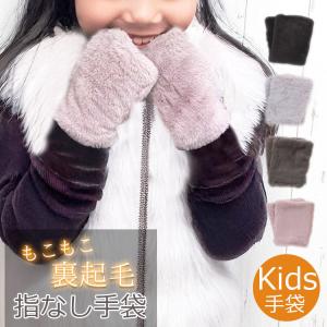手袋 指なし 子供 キッズ 指出し 女の子 かわいい 黒 ファー ボア ふわふわ シンプル 無地 フィンガーレス 手袋 グローブ 防寒 ハンドウ