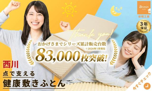 西川 高反発 点で支える 健康敷き布団 200N 厚み9cmシングル