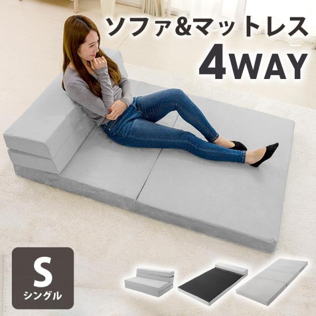 ソファーベッド シングル 3WAY コンパクト ハイバック 1人掛け リクライニング 折りたたみ ローソファ フロアソファ 座椅子 クッショ