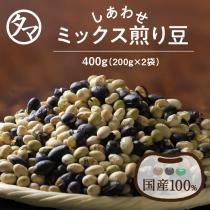 \100円OFF!/3種の国産ミックス煎り豆 400g(200g×2袋) 無添加 ヘルシー 焙煎大豆 黒豆 青大豆 まめ レジスタントスターチ お試し 無
