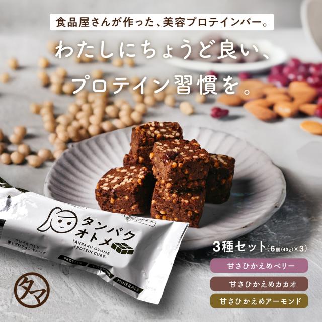 【ギフトSALE】お手軽たんぱく質「タンパクオトメキューブ3種セット」(カカオ・ベリー・アーモンド・黒ごまきなこ)プロテインバー 卒業
