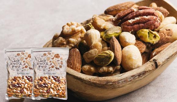 \受賞記念SALE/◆しあわせミックスナッツ 1kg (500g×2袋)大容量 無塩 無油 無添加 アーモンド カシューナッツ クルミ マカデミアナ