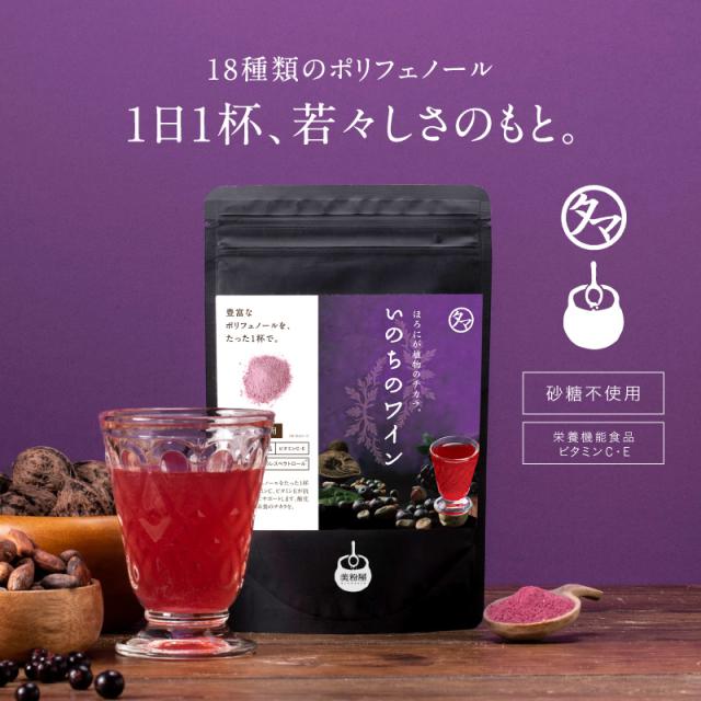 いのちのワイン100g インナーケアに!贅沢18種類のポリフェノール ポリフェノールパウダー 砂糖不使用 抗酸化 ポリフェノール リコピン