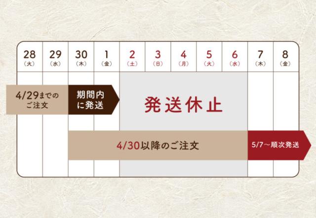 4月末〜5月GW期間にいただいたご注文につきましては、
