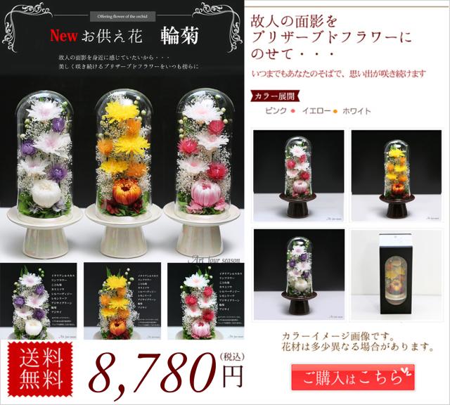 新盆 初盆 仏花 プリザーブドフラワー 仏花 仏壇用 1対 即日配送 供花 お悔やみ 【対デザイン 輪菊ドーム】 お彼岸 法要 電報 仏事 命日