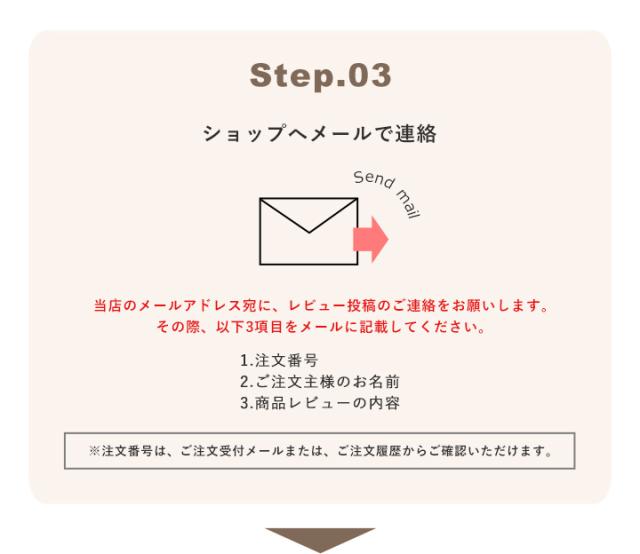 ※レビュー投稿特典に関しては、投稿後ショップにご連絡頂いた方のみ対象となります。