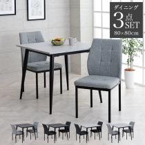 ダイニングセット 2人 テーブル デスク 「 ダイニングテーブル ポロン 3点セット 」 大理石調 黒脚 アイアン 幅80 チェア2脚 ファブリッ