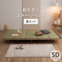 ステージベッド セミダブル ベッドフレーム 畳ベッド 小上がり 夢見畳 セット ローベッド 和モダン ジャパンディ 多機能ベッド 木目 ナ