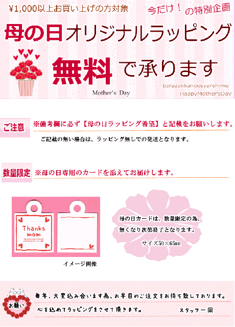 簡易ではございますが、心をこめて無料でラッピングをさせていただきます♪