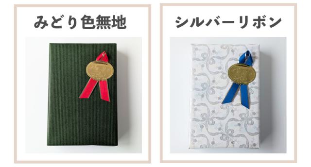 ※商品のサイズや包装紙の色等によって、リボンの色、シールのはり方、包み方などがかわります。