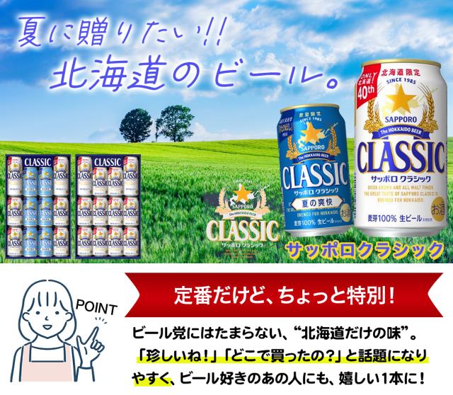 お中元 ギフト ビール 送料無料 サッポロクラシック ダブルセット 夏の爽快入り(12本入り/化粧箱入り/CNW3D) / 御中元 夏ギフト 内祝い