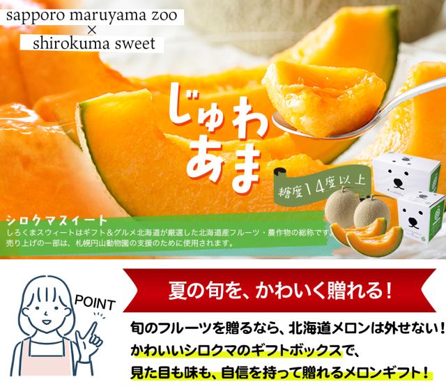 出荷中 お中元 ギフト メロン 送料無料 SHIROKUMA SWEET 北海道産 赤肉メロン 2玉入(1玉約1.6kg 大玉 Lサイズ×2玉) / 2玉 北海道