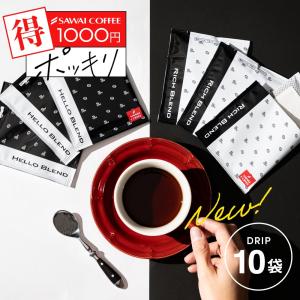 1000円ポッキリ 澤井珈琲 挽きたて リッチブレンド/ハローブレンド ドリップコーヒー10杯【追跡ゆうメール】 白と黒 コーヒー ドリップパ