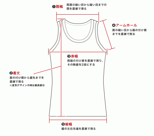 ・ 身幅:両脇の付け根を直線で測り、その数値を2倍にする